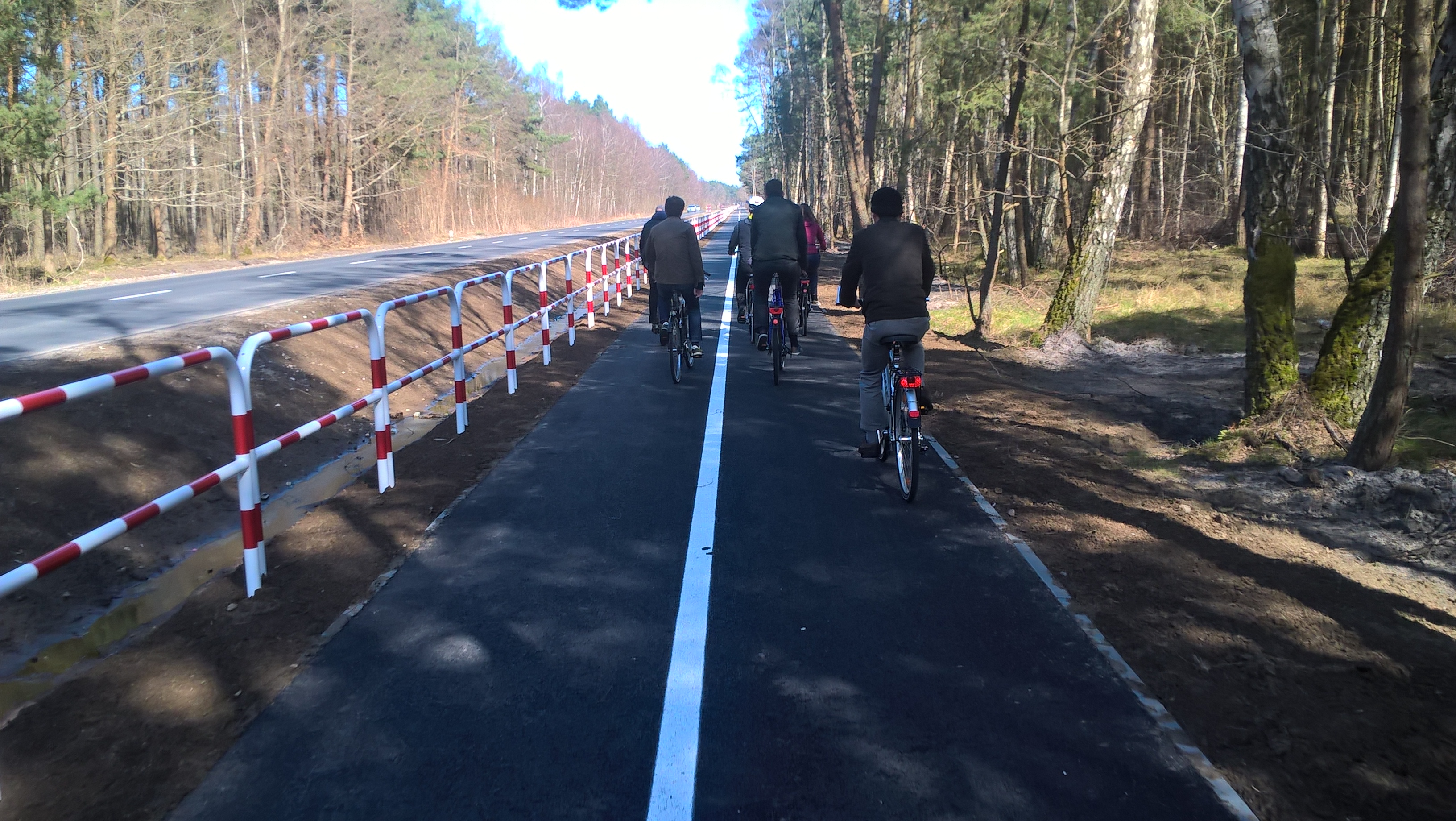 Po obiedzie kolejnym punktem programu był przejazd autokarem do Mrzeżyna, gdzie czekały na uczestników warsztatów wynajęte przez hotel rowery. Przedstawiono plan trasy oraz miejsca gdzie zrealizowane będą inwestycje w ramach projektu „Biking South Baltic”, a także wykonany już czujnik do zliczania rowerzystów przy drodze powiatowej Mrzeżyno-Rogowo. Trasa wycieczki rowerowej wiodła przez: Mrzeżyno – Rogowo – Dźwirzyno – Grzybowo – hotel Baltic Plaza w Kołobrzegu. Długość trasy wyniosła ok. 20 km.