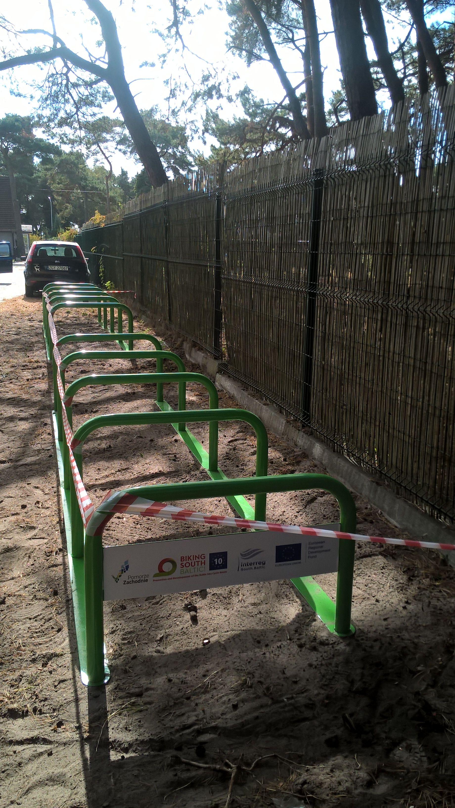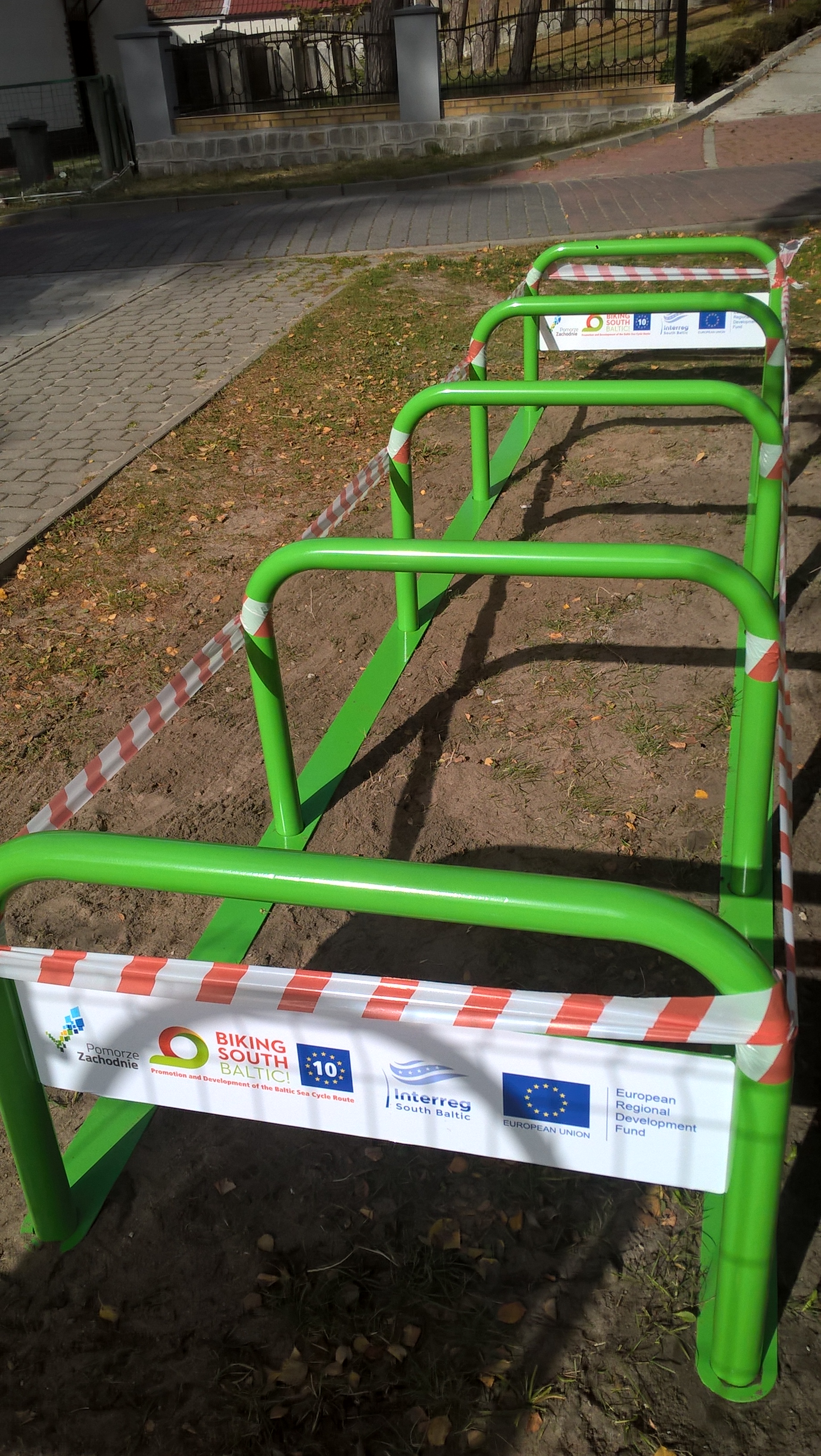 Parkingi rowerowe zostały wykonane w ramach projektu: „Biking South Baltic! Promocja i rozwój Trasy Rowerowej Morza Bałtyckiego (EuroVelo 10) w Danii, Niemczech, Litwie, Polsce i Szwecji”, realizowanego w ramach Programu Współpracy Transgranicznej Południowy Bałtyk.