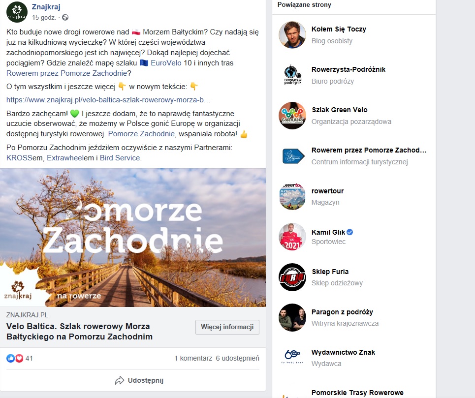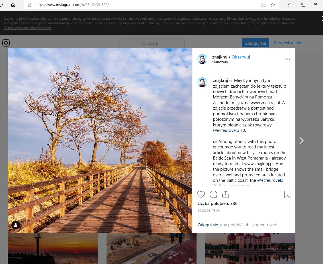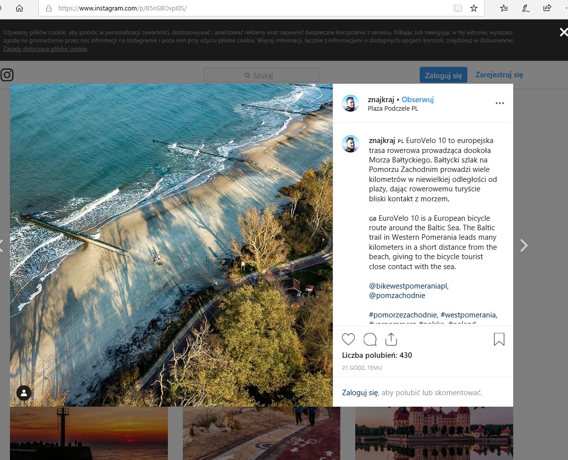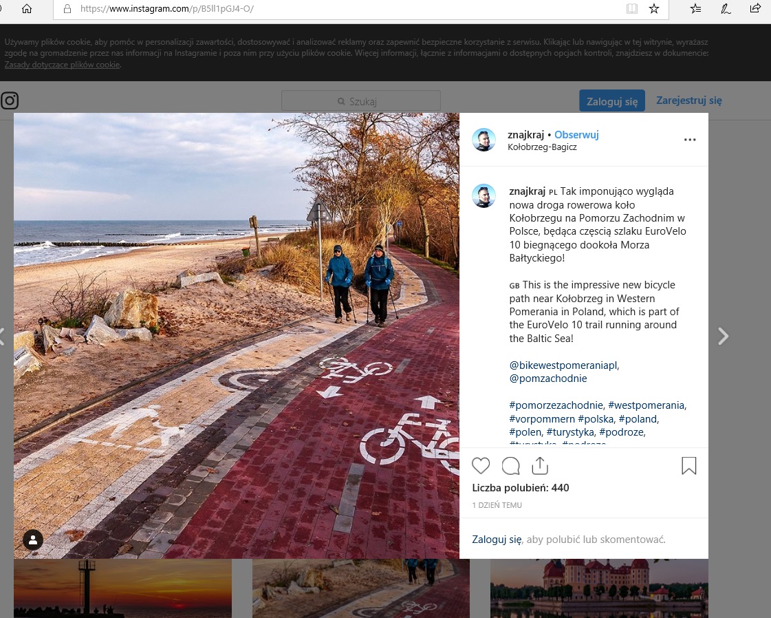 W ramach umowy na blogu podróżniczym Znajkraj.pl zamieszczony został artykuł dotyczący zachodniopomorskiego odcinka trasy rowerowej EuroVelo 10 (Velo Baltica):