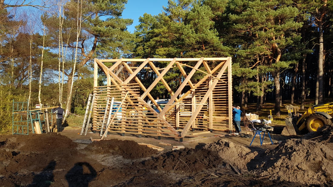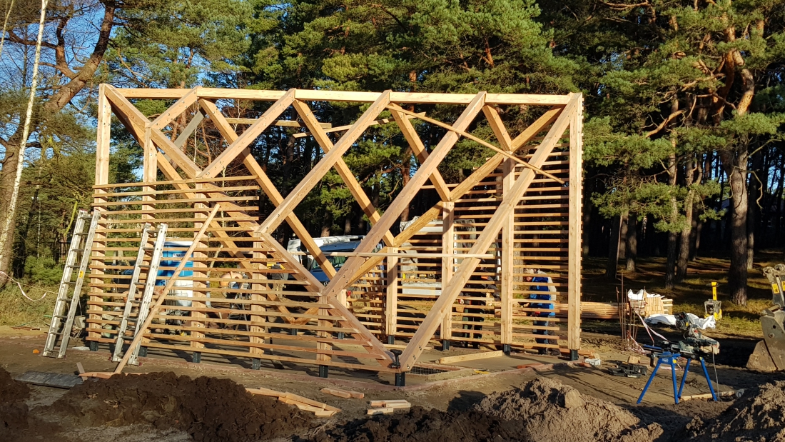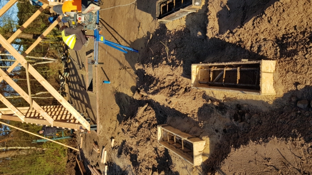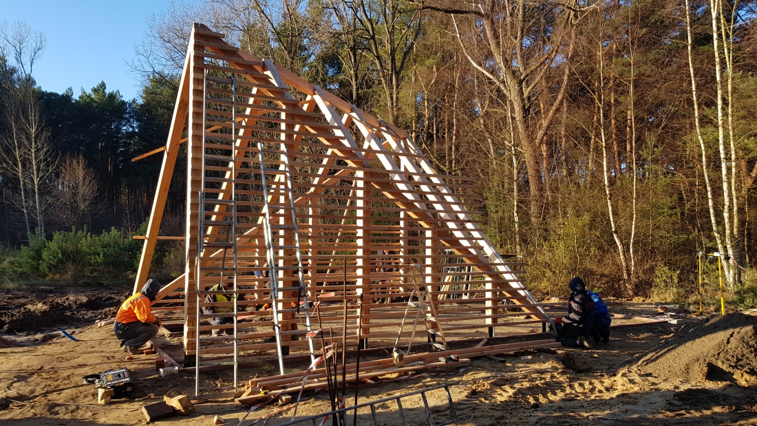 W dalszym ciągu trwają prace związane z montażem konstrukcji drewnianej Modelowego Miejsca Odpoczynku Rowerzystów w Mrzeżynie. Ponadto Wykonawca wykonał fundamenty pod stojaki na rowery oraz rozpoczął układanie posadzki.
