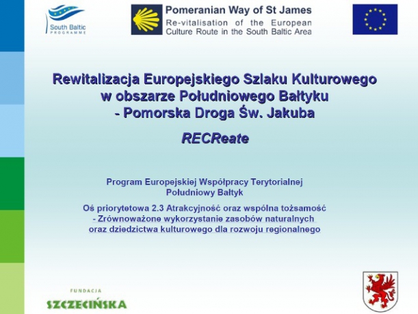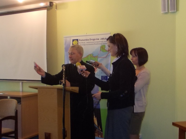 Spotkanie rozpoczął ks. Henryk Romanik - diecezjalny konserwator zabytków, członek Kapituły Pomorskiej Drogi Św. Jakuba, przypomnieniem Aktu Europejskiego wygloszonego przez Jana Pawła II podczas Dni Młodych odbywających się w Santiago de Compostela w 1982 r. Zaprezentował on także ideę duchową i kulturową pielgrzymowania Jakubowego. Dyrektor Wydziału Duszpasterskiego Kurii ks. Krzysztof Włodarczyk ukazal wymiary duszpasterskie Pomorskiej Drogi Św. Jakuba. Informacje o realizowanym projekcie, jego celach i oczekiwanych rezultatach przybliżyła p. Bożena Wołowczyk (Urzad Marszalkowski Województwa Zachodniopomorskiego). Uczestnicy spotkania mogli także poznać świadectwo pielgrzymowania do Santiago zaprezentowane przez p. Alicję Górską - dyrektor Radia Plus, która w 2010 r. odbyła wędrówkę do Santiago. Na zakończenie konferencji p. Krystyna Bastowska z Wojewódzkiego Urzędu Ochrony Zabytków przedstawiła aspekt konserwatorsko-turystyczny Pomorskiej Drogi. Na konferencję przybył także przewodniczacy Kapituły Pomorskiej Drogi Św. Jakuba p. Ryszard Wenta, który jako wicestarosta powiatu lęborskiego jest jednocześnie partnerem projektu RECReate. Zachęcił on wszystkich do wspólnego kreowana Pomorskiej Drogi. Konferencję zaszczycił swoją obecnością Biskup Koszalińsko-Kołobrzeski Edward Dajczak, który wykazał duże zainteresowanie projektem i zaapelował do środowisk kościelnych o aktywność w tym przedsięwzięciu. Konferencja odbyła się z inicjatywy Kurii Biskupiej Diecezji Koszalińsko-Kołobrzeskiej.