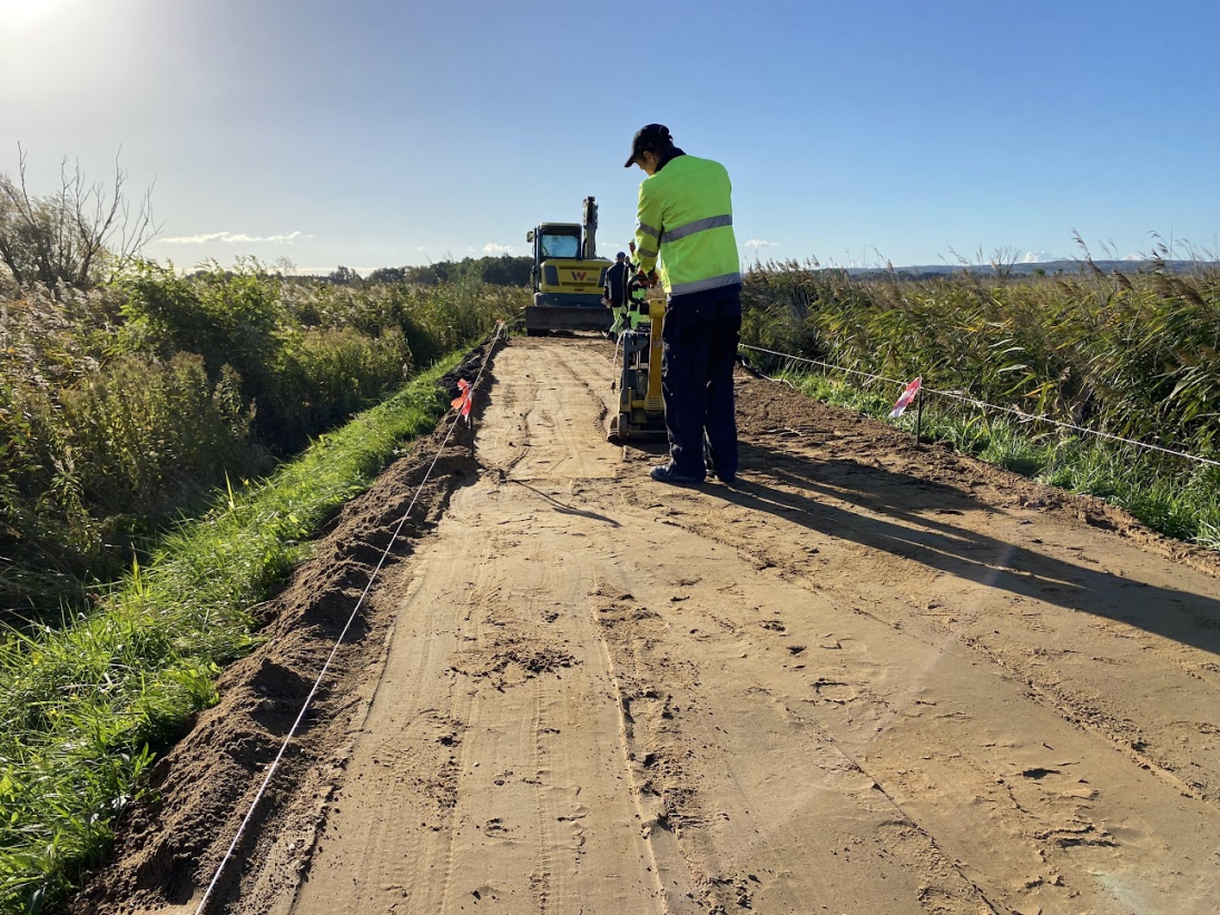 Przedstawiciele Województwa Zachodniopomorskiego wraz z Przedstawicielami Wykonawcy (Kristone Krystian Suda) w dniu 07 października 2022 roku dokonali odbioru częściowego robót budowlano-montażowych na odcinkach km 2+175 do km 2+850 oraz km 3+725 do km 5+100 na wale przeciwpowodziowym wzdłuż rzeki Chełszcząca i jeziora Dąbie w ramach realizacji projektu „Zaprojektowanie i wykonanie szlaku rowerowego na wale przeciwpowodziowym wzdłuż rzeki Chełszcząca i jeziora Dąbie”.