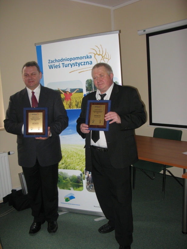 Najbardziej otwarte na turystów zachodniopomorskie wsie, które wystartowały w konkursie "Zachodniopomorska Wieś Turystyczna" otrzymały z rąk Marszałka Województwa Zachodniopomorskiego Olgierda Geblewicza oraz Prezesa Zachodniopomorskiej Regionalnej Organizacji Turystycznej Waldemara Miśko certyfikaty "Zachodniopomorska Wieś Turystyczna 2011".